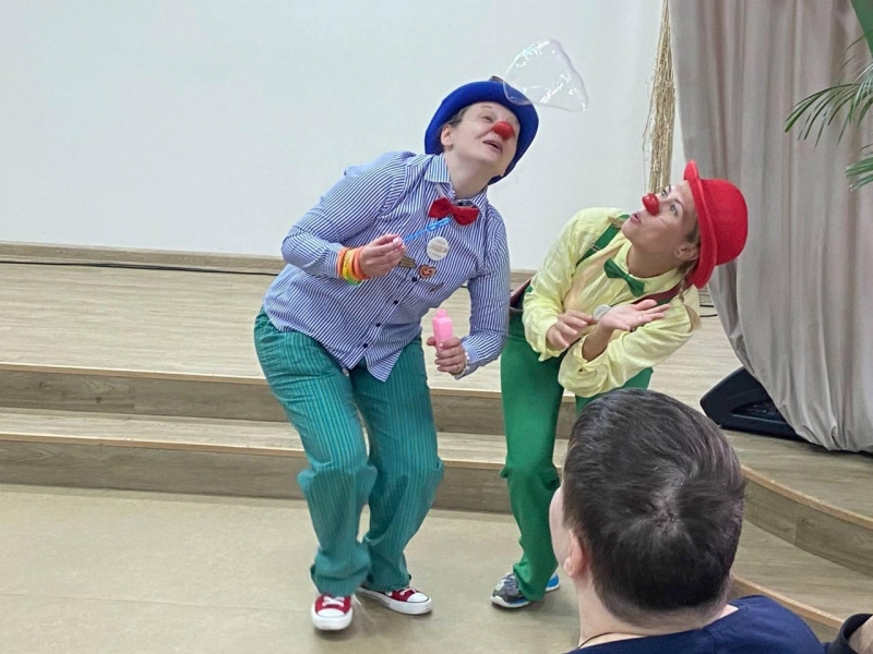 Час прошёл незаметно! А после — клоуны навестили тех, кто не смог выйти в зал, чтобы подарить капельку радости и тем, кто особенно в ней нуждается.