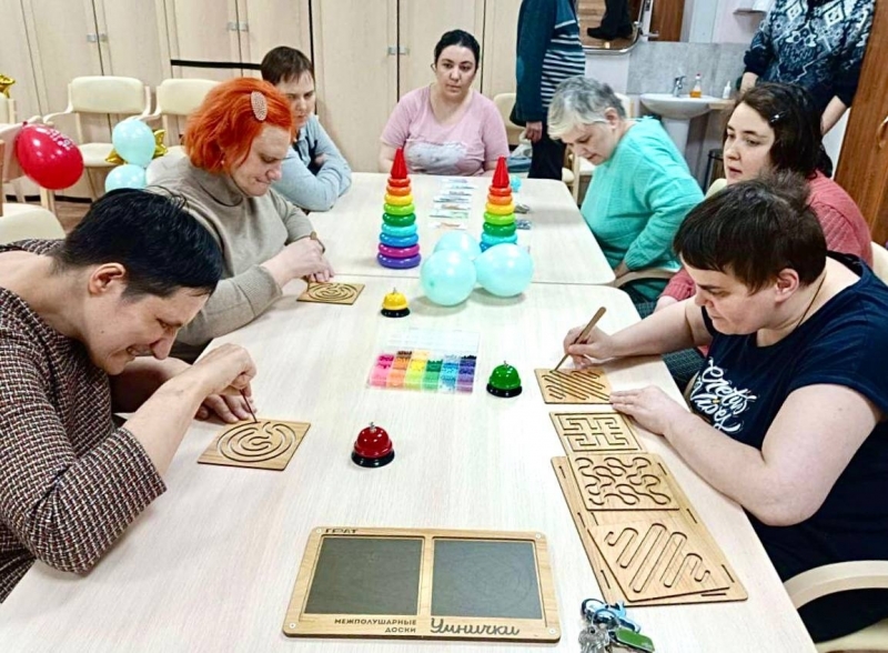 Психолог в социальной сфере Социального дома «Вешняки» провела занятие, направленное на повышение когнитивных и эмоциональных ресурсов. Ребята играли в лото и практиковались в межполушарных досках — специальных развивающих элементах , стимулирующих работу обоих полушарий мозга.