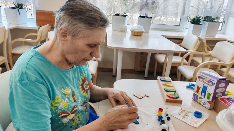 «Это кажется так просто — раскрасить. Но если приглядеться, то можно увидеть, что на игрушках много мелких деталей, которые нужно очень аккуратно расписывать. Девушки стараются. Здесь — и реабилитационный эффект, и радость от изделия, созданного своими руками».