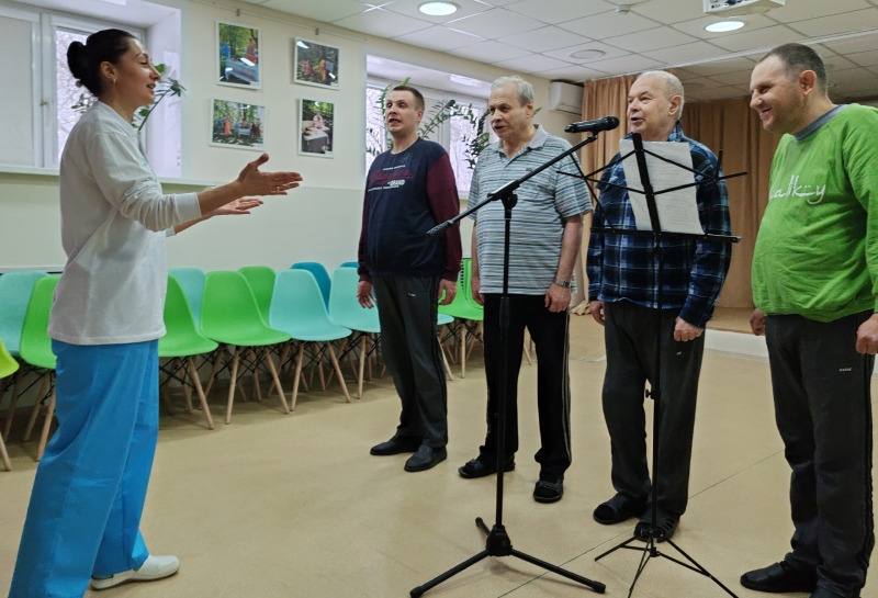 А вообще, для того, чтобы красиво петь хором, главное даже не дыхание, артикуляция, голос или слух. Очень важным является навык умения слышать друг друга. Этому мы тоже учимся на наших занятиях, стараемся контролировать свой звук, прислушиваться к соседям по "партии", - рассказала об особенностях занятий хоровым пением его ведущая, специалист по социальной реабилитации Армине Шибанова.