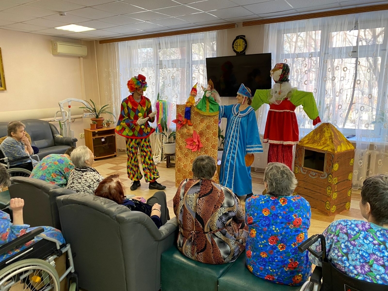 Кукольный спектакль «Петрушка на Масленице», посмотрели наши жители в социальных отделениях. В увлекательной, игровой форме, кукольный персонаж поведал об обрядах и тонкостях празднования Масленицы. Спектакль порадовал подопечных своим легким юмористическим сюжетом, и доставил ребятам массу положительных эмоций.