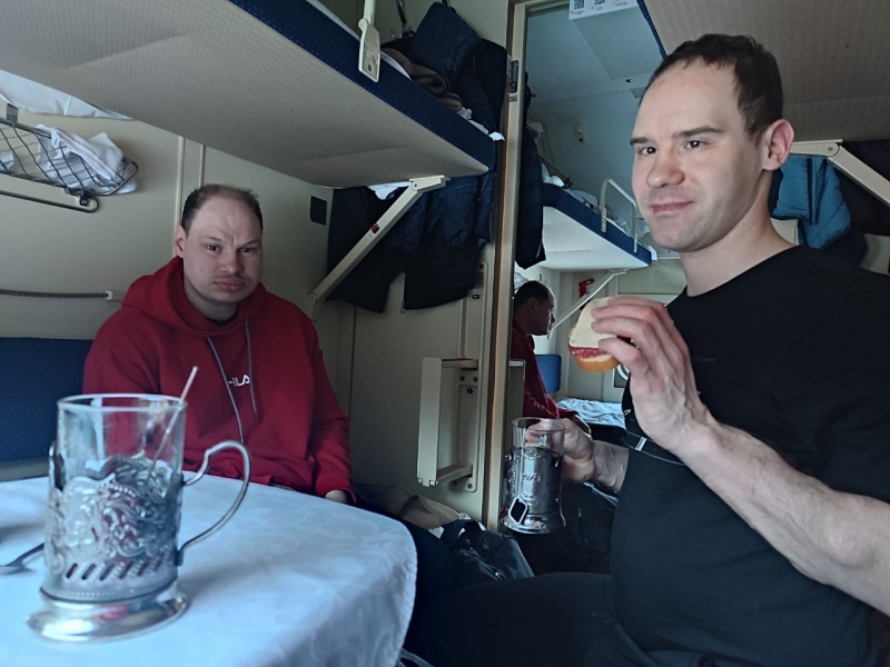 Путешествие в город на Неве началось в комфортном вагоне уютного поезда, в ночь с 17 на 18 апреля. По дороге успели выспаться и отдохнуть, утром прибыли в гостиницу. Один день на отдых, прогулку и подготовку к соревнованиям, которые стартуют 19 апреля.