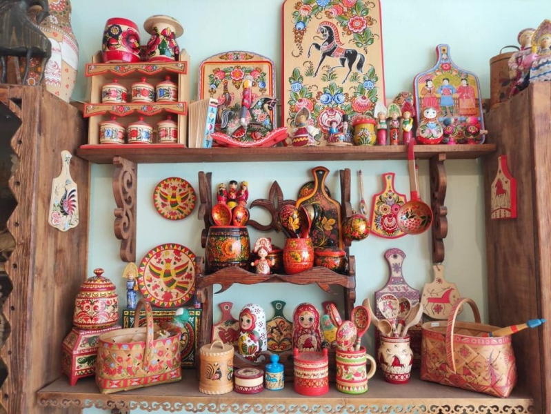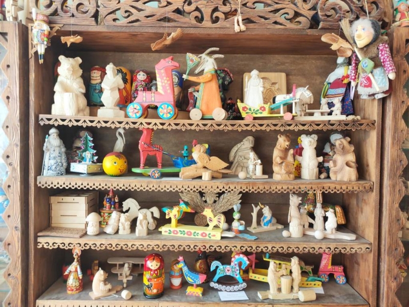 Основу экспозиции составляет уникальная коллекция традиционных Богородских резных игрушек, среди них