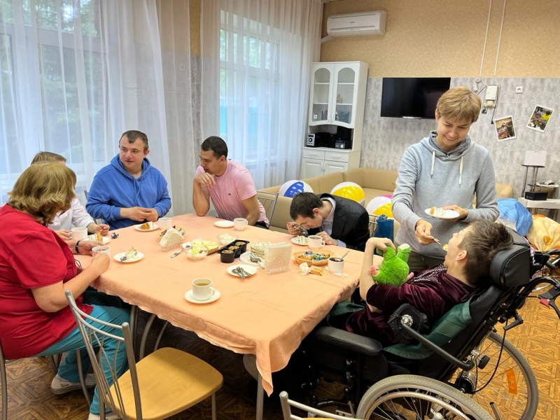 Сотрудники очень тепло встретили наших ребят, за чаем вспоминая их детство. А наши ребята с удовольствием делились своими достижениями и планами на будущее. Максим рассказал о своих успехах, ведь он уже более года самостоятельно работает в МФЦ, помимо этого посещает благотворительный фонд «Тверская 15», где занимается с логопедом и осваивает профессию бариста.