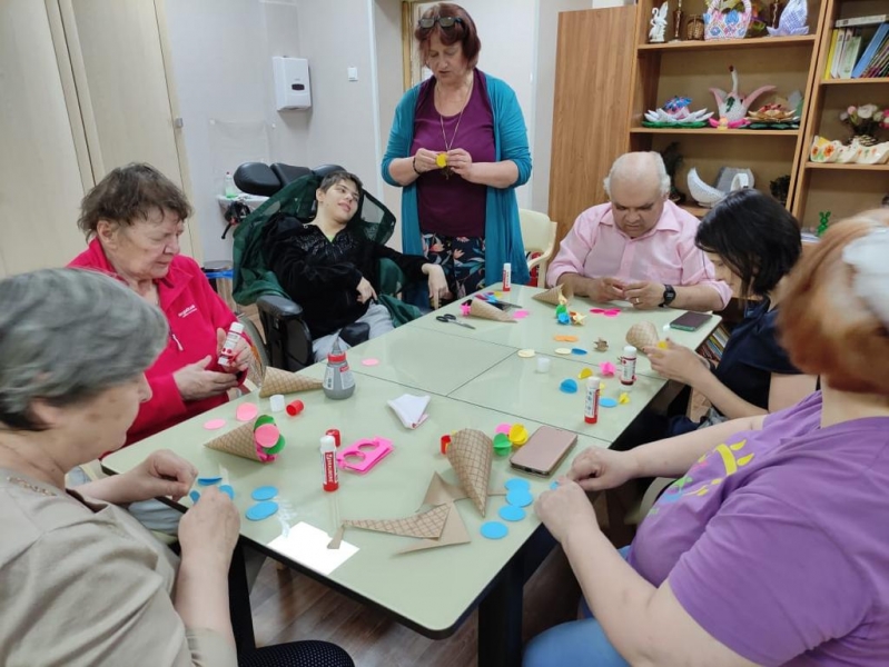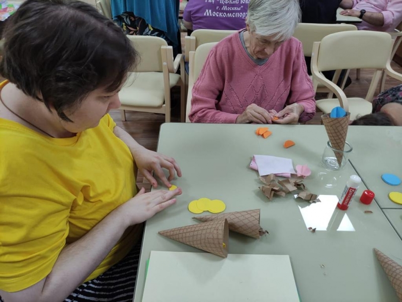 «Я сделаю клубничное мороженое!» - говорит Наташа, выбирая розовый лист бумаги.