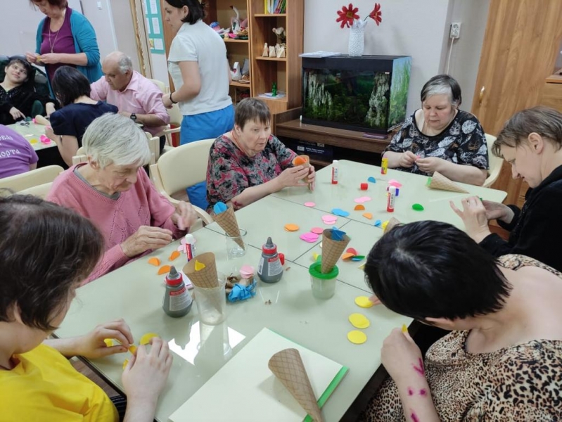 «А я - фисташковое и шоколадное», - фантазирует Людмила. У девочек получились яркие красочные шарики в рожках, почти как настоящие. А ещё, мы договорились в ближайшее время на прогулке обязательно поесть мороженого!