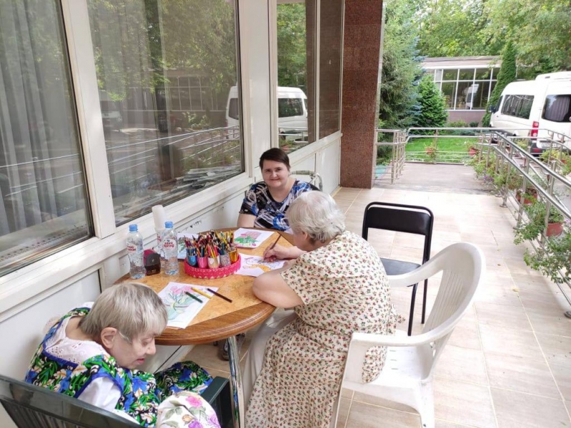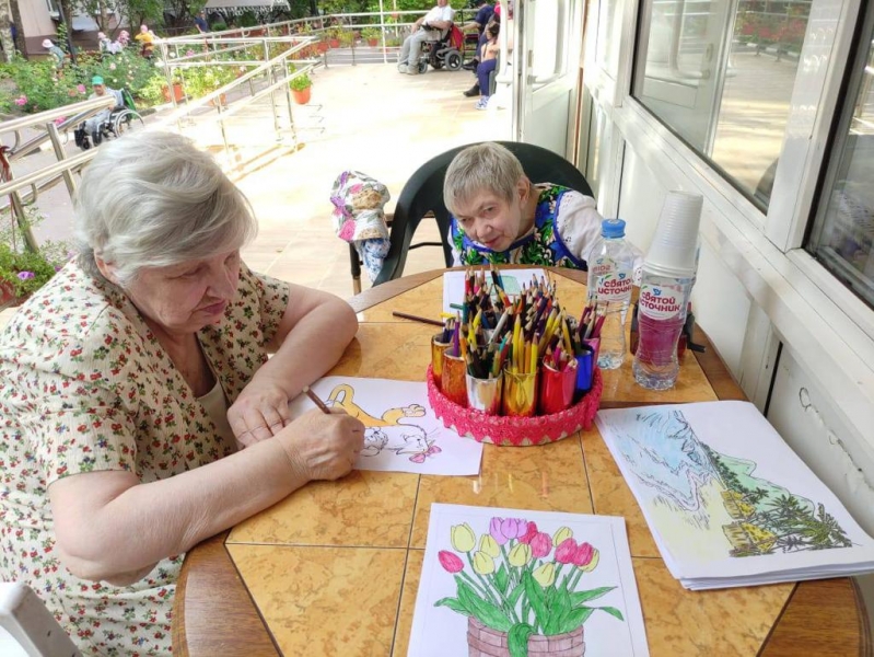 Пока на улице тёплая погода, наши жители занимаются творчеством на свежем воздухе.