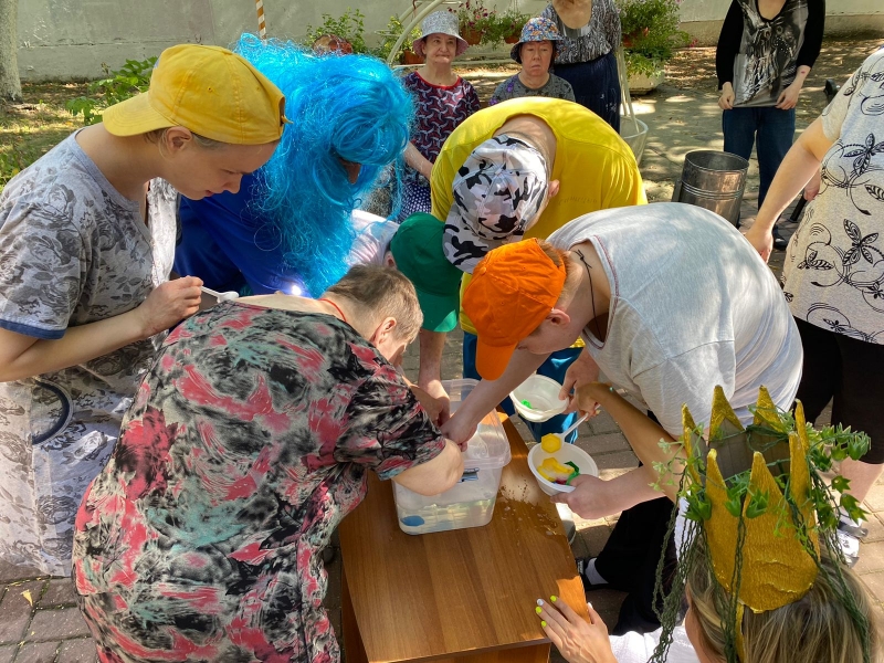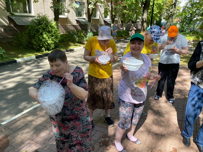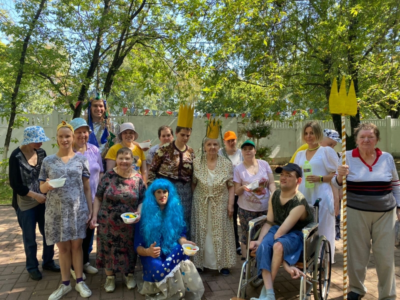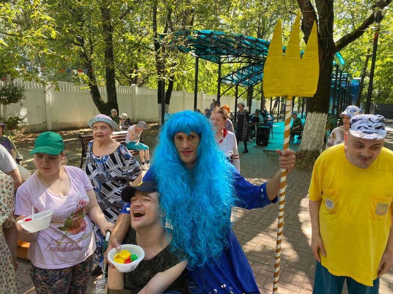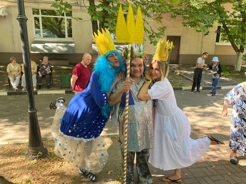 Жители нашего Дома, желая «задобрить» повелителя морей и океанов Нептуна, чтобы прекратилась жара, устроили весёлый водный праздник. Нарядившись в костюмы, как полагается, Нептун предстал со своей свитой - русалками, Тритоном, женой Салацией, богиней соленой воды и начался весёлый праздник.