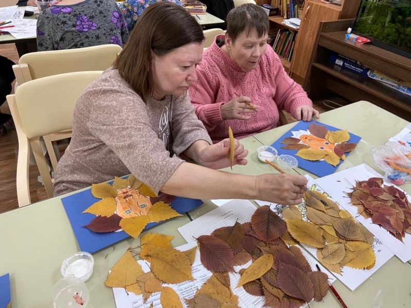 Перед тем, как приступить к поделке, наши девушки заранее запаслись необходимым материалом: в тёплую сухую погоду собрали и засушили красивые осенние листья.