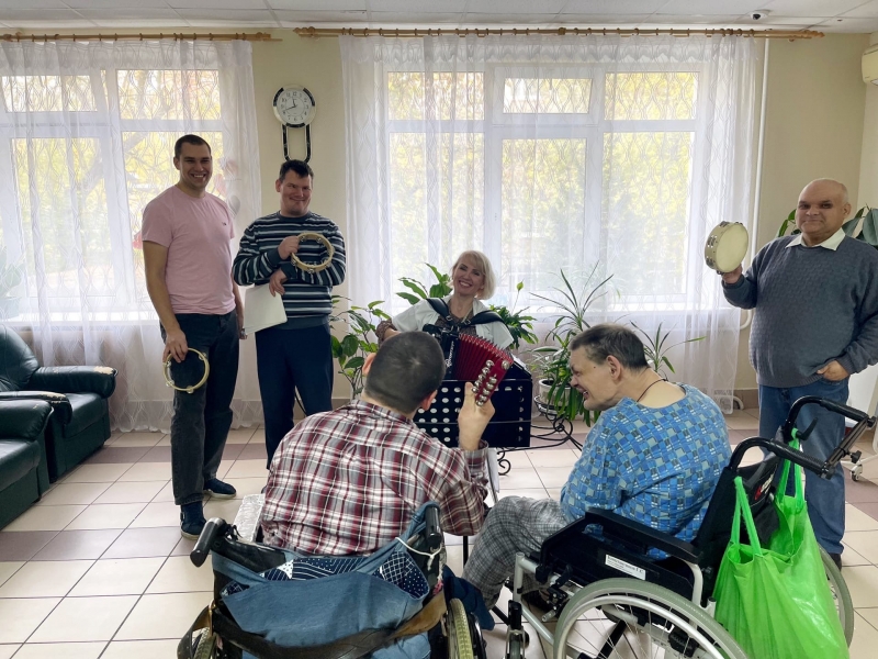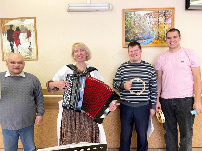 Душевные и зажигательные, народные и современные, под баян звучат песни и мелодии разных лет. Наши бабулечки с удовольствием подпевают, а ребята подыгрывают на музыкальных инструментах.