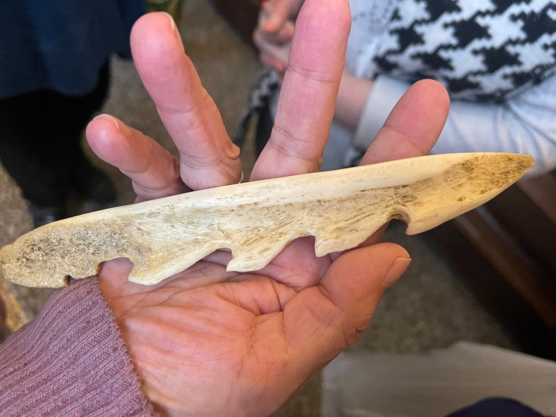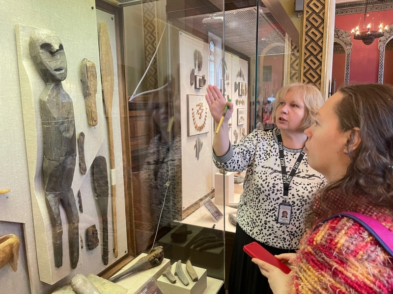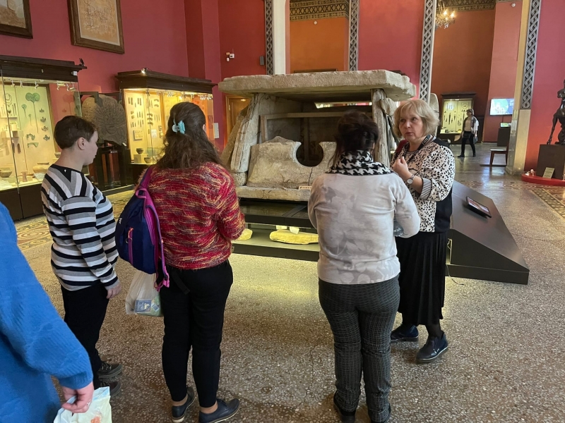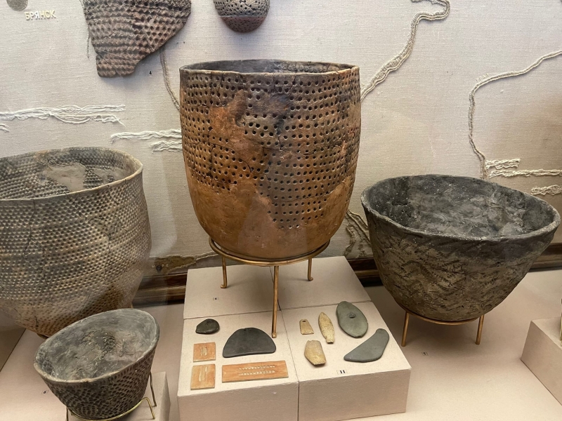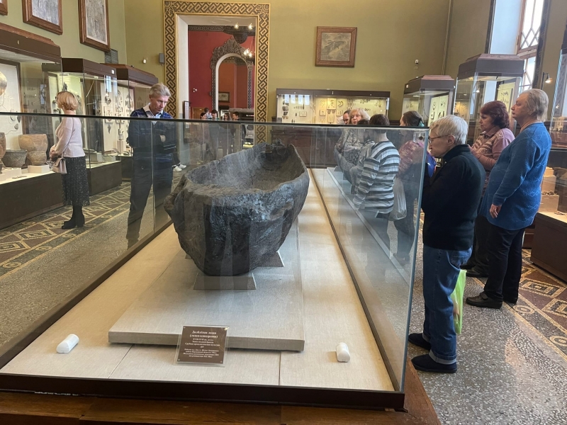 Ребята познакомились с основными занятиями древних людей в каменном и бронзовом веках, увидели первые орудия труда, оружие для охоты, рыболовные снасти, посуду, украшения, идолов. Также, имели возможность потрогать своими руками настоящий гарпун из кости, наконечники для стрел из камня, бронзы. Большое впечатление на ребят произвела гигантская лодка XVIII-XVII вв до н.э., в неё вмещалось 14 человек, использовалась такая лодка для рыбной ловли.