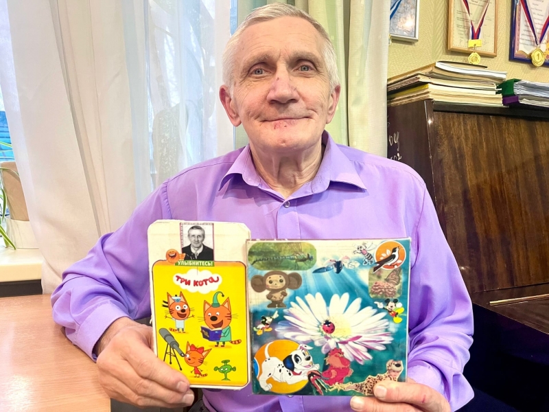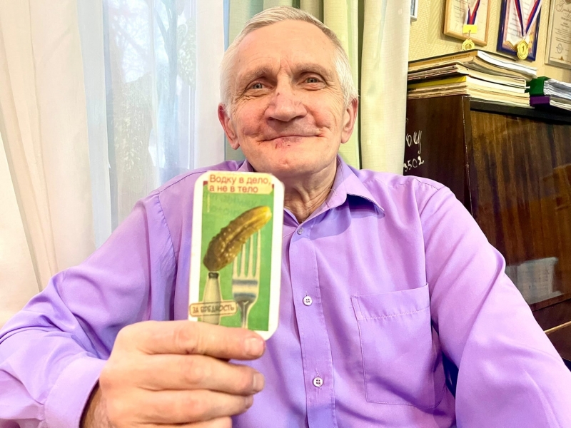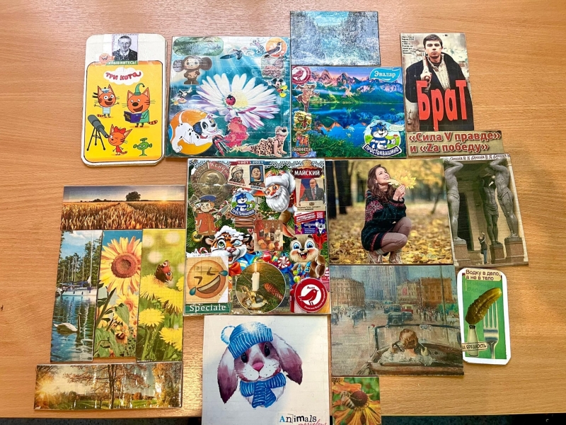 Неунывающий шутник, в свободное время делает своими руками открытки и закладки для книг из подручных средств. На открытках шутливые, забавные надписи, или изображения героев из советских мультфильмов. Закладки для книг с дорогими сердцу изображениями русской природы. Лучшие работы он дарит друзьям.