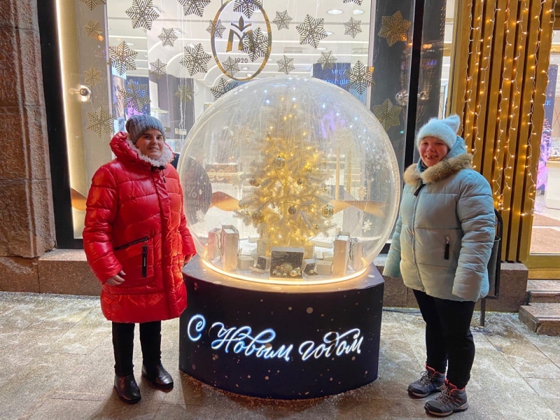Невероятные наряженные ели, светящиеся шатры, ярмарка в ГУМе, световые инсталляции, огромный торт у Большого театра с музыкой Чайковского, все это произвело невероятное впечатление на наших жителей. Мы окунулись в настоящую зимнюю сказку, сделали множество фотографий на память и даже ничуть не замёрзли, поскольку с погодой повезло, было не так холодно.