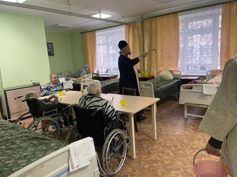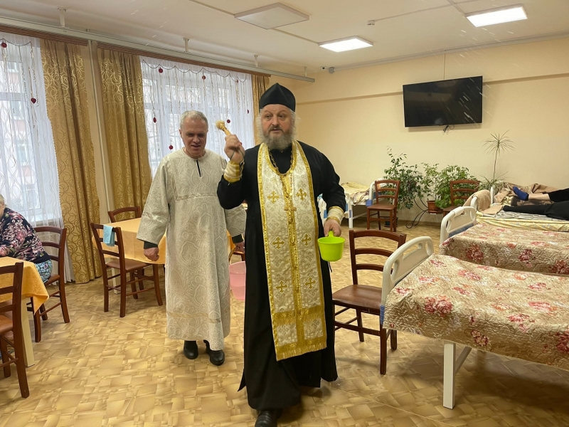 В нашем домовом храме, Святителя Алексея, митрополита Московского, 18 января состоялся чин Великого освящения воды, после чего священнослужители окропили святой водой все комнаты и помещения нашего Дома.
