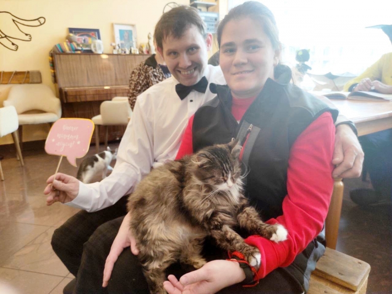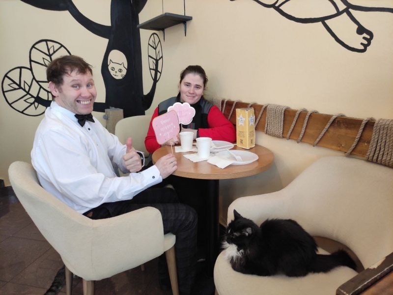 Посещать в день влюблённых – 14 февраля котокафе «Мурчашка», уже становится традицией для наших парочек. Ровно год назад наши ребята были там, и сегодня опять приехали. Мягкие пушистые создания там повсюду, свернувшись клубочком в корзинках или гуляющие просто так, привлекая внимание посетителей. Их можно гладить, а ещё, можно забрать питомца домой насовсем..