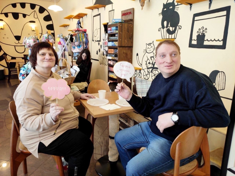 Наши парочки с удовольствием побыли в обществе пушистых созданий. Для других влюблённых парочек, уже в нашем «кафе» Социального дома «Вешняки», состоялось чаепитие, где ребята поздравили друг друга с этим романтическим праздником!