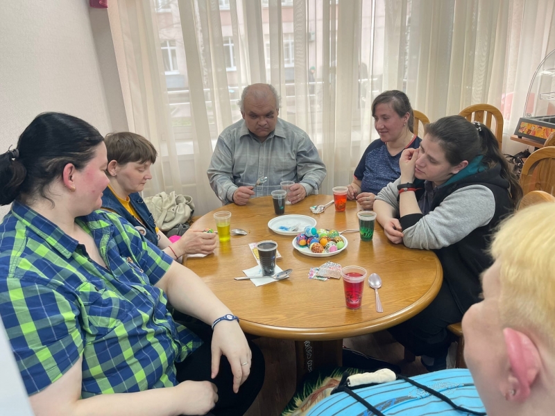 Сегодня, как раз в Великий четверг, в день, когда все люди красят яйца и пекут куличи, наши девушки тоже сварили яйца, самостоятельно развели в воде красители по инструкции, и приступили к украшению их стразами, бусинами и наклейками!