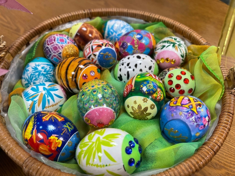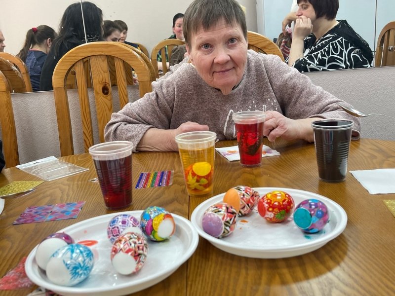 Наши пасхальные символы жизни получились разноцветными, яркими и очень красивыми! Девушки очень довольны результатом, они отнесли корзинки с яйцами в наш домовый храм, где вскоре будет освящение куличей и яиц!