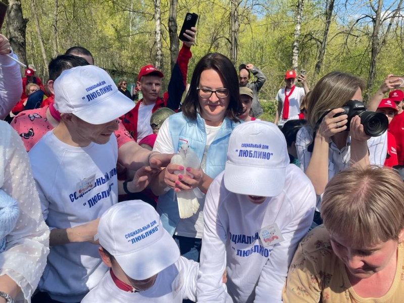 В завершении праздничной программы все участники вместе с заместителем руководителя Департамента труда и социальной защиты населения города Москвы Оксаной Владимировной Шалыгиной выпустили в небо голубей и праздничные шары!