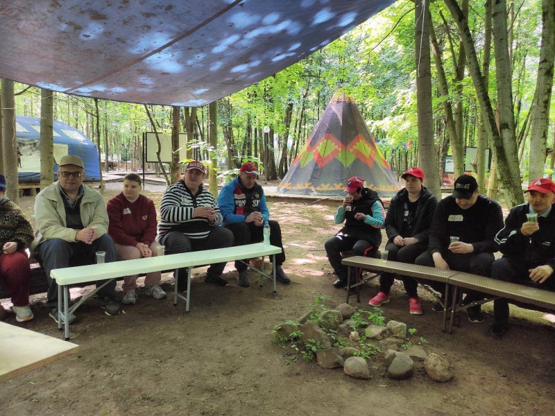 На привале ребята делились воспоминаниями о своих домашних животных. В завершении похода, напоили собак, сняли амуницию, вернулись в лагерь. Инструктора научили ребят вязать прямой узел. За чаепитием все делились впечатлениями, ребят переполняли эмоции от похода и общения с собаками.
