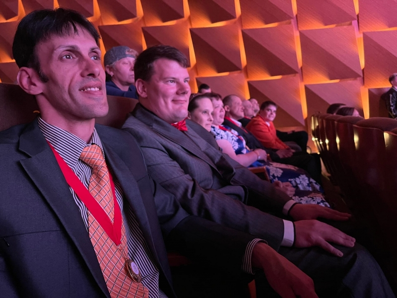 Прямо сейчас артисты театральной студии «Арт-карнавал» Социального дома «Вешняки» находятся на церемонии награждения Конкурса «Особые таланты-2023. Вместе с художественным руководителем – Ларисой Павловной Зверевой, ребята получили заслуженные награды: гран-при в номинации «Документальный или игровой видеофильм» – «Золушка», а также II место в номинации «Театральное искусство» - «Золушка».