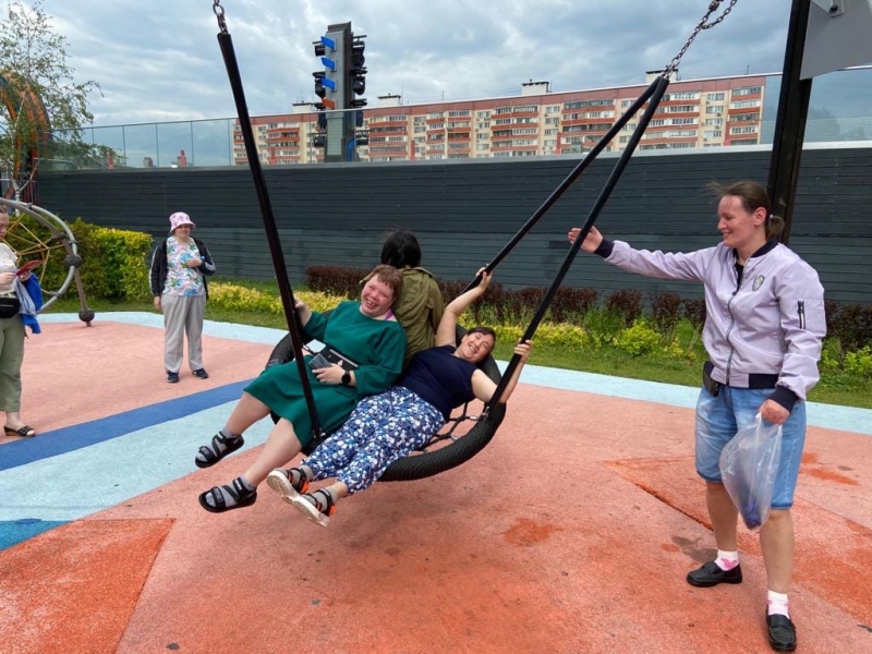 А наши девчонки просто в восторге от качелей! Здесь не только обычные деревянные сиденья на веревках, но и современные качели-гнезда, которые позволяют расслабиться и покачаться, вернувшись на минутку в детство.