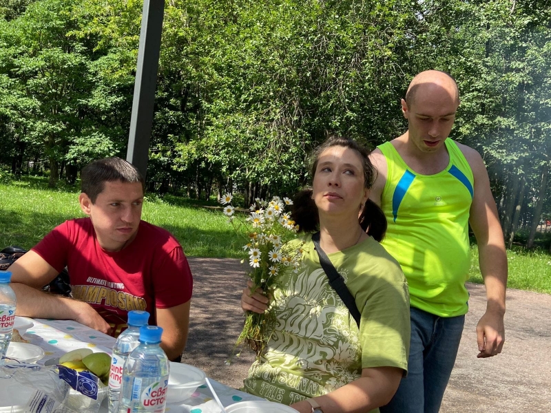 Пока мясо готовилось, успели поиграть в волейбол. Один из наших ребят, решил сделать приятный сюрприз своей девушке и нарвал для нее букет ромашек. Она была очень рада и благодарна за такой замечательный подарок.