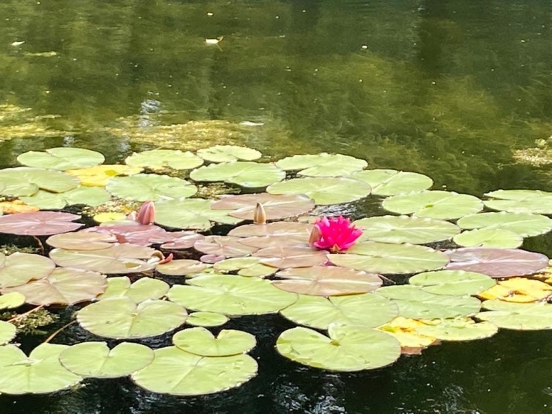 В парке на пруду живет множество уток, за которыми интересно наблюдать. За мамой-уткой плывут утята, скрываясь в тени прохлады растительности озера, там распустились красивые кувшинки!