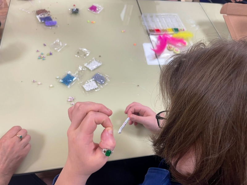 Вот и сегодня наши девчонки счастливы, как никогда, – каждая сплела себе по браслету из бисера! Бисероплетение – очень кропотливая работа, развивающая терпение, настойчивость и конечно же, мелкую моторику! Умение сконцентрироваться на одном занятии, работая с мелкими деталями, создавая уникальное украшение вызывает восторг у наших девчонок!