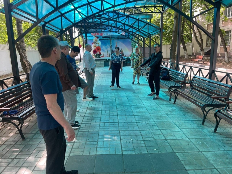 Последние тёплые летние дни мы проводим весело и интересно. В нашем дворе ежедневно, пока позволяет погода, проходят интерактивные и развивающие игры, где каждый желающий может поучаствовать. Кегли, кольца, игры с мячом пользуются популярностью, а также интеллектуальные – для тех, кто желает и может принять участие, выполняя задания на сообразительность. Еще ребята заниматься зарядкой, – на свежем воздухе она полезна вдвойне!