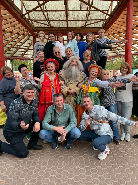 Разгуляй в доме Берендея продолжил веселье: сам царь Берендей встретил гостей с чарочкой медовухи, хлебом-солью , да песнями и плясками. Интерактивная программа была очень насыщенная, наши сотрудники с большим удовольствием «летали» на мётлах, ездили в ступах, танцевали под аплодисменты и хохот Бабы Яги! Некоторые коллеги настолько раскрепостились, участвуя в конкурсах, что раскрыли до конца свой творческий потенциал!