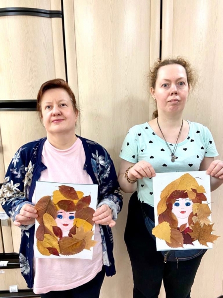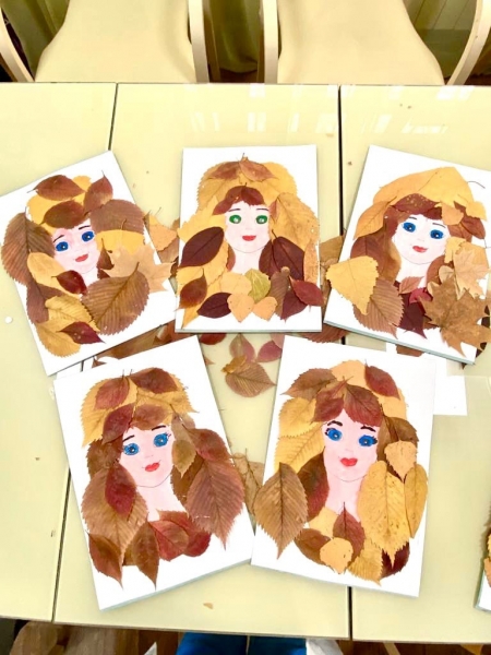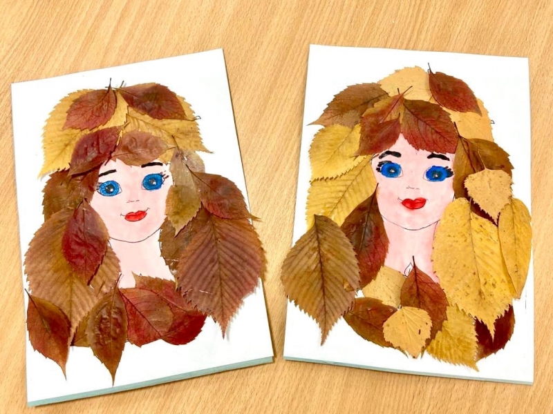 Наши талантливые девушки сегодня порадовали нас своими умелыми руками и воображением! Они сделали аппликации из осенних листьев, изобразив красавицу Осень.