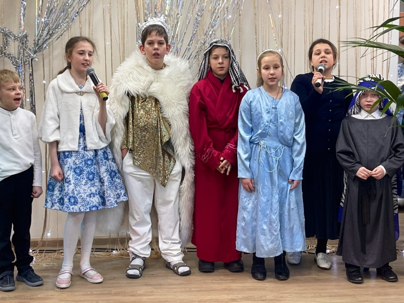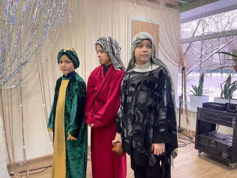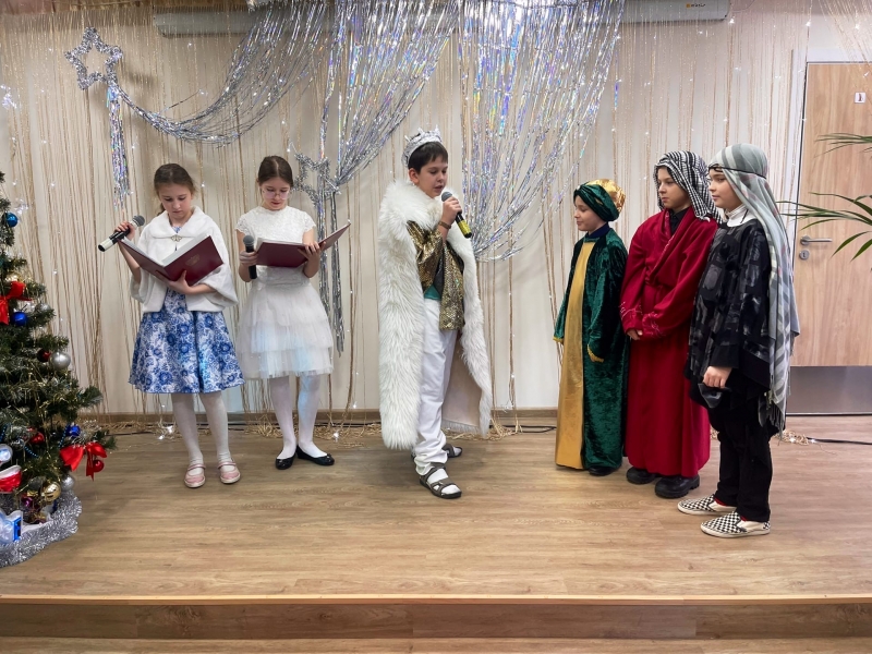 На концерте дети читали стихи, пели рождественские песни и разыгрывали сценки. На сцене были представлены события, предшествующие Рождеству, с волхвами и дарами младенцу Христу.