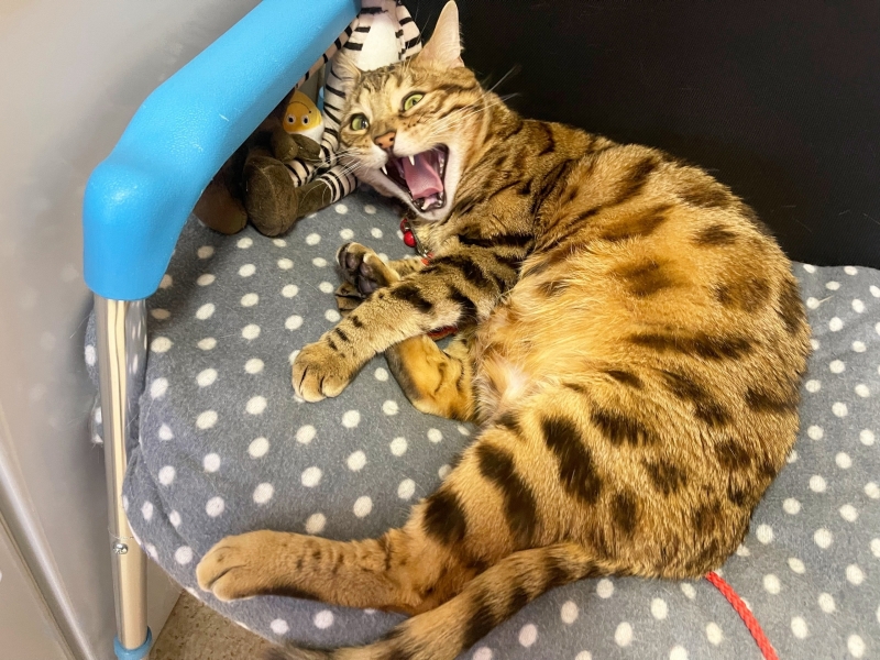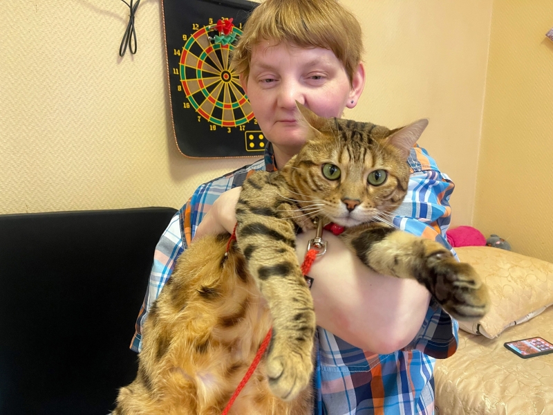 Грант – настоящий красавец породы Бенгал! Он обожает сухой корм, но иногда не прочь полакомиться даже комнатным цветком. Весьма прожорлив, обожает, когда его гладят, а ещё свою хозяйку Олю.