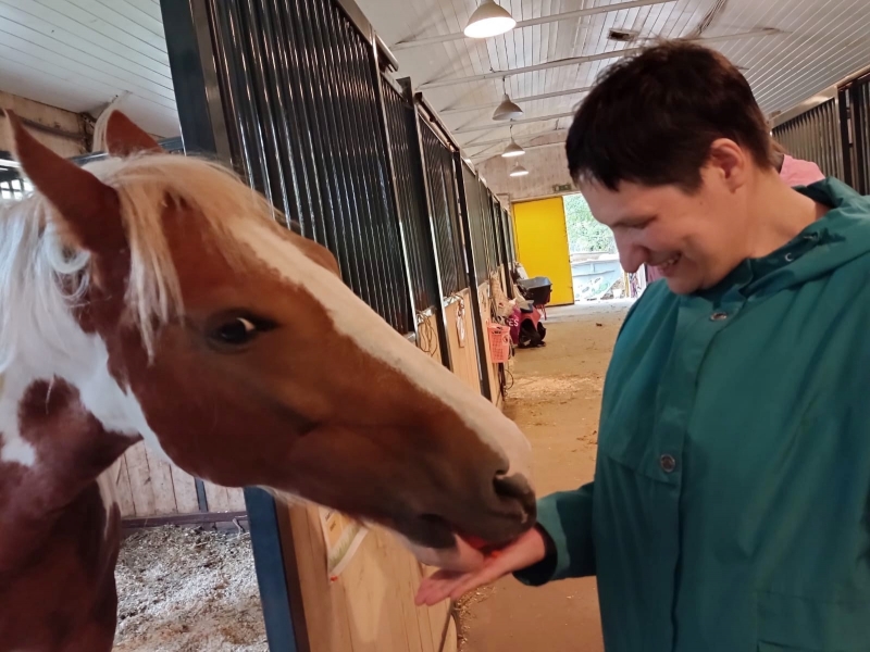 Сегодня на конном дворе «Узкое» произошло нечто особенное! Вальс, – вороно-пегий пони, не смог сдержать свои эмоции, увидев Свету. Дело в том, что наша Света — настоящая любительница животных, и лошади мгновенно чувствуют эту любовь! Почувствовав её тепло, Вальс сразу потянулся к ней.