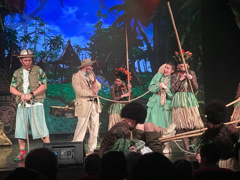 Нас там ожидали захватывающие погони, схватка динозавров, забавные танцы и песни туземцев! Это невероятное шоу с элементами иллюзии и цирка, создало атмосферу настоящего приключения!