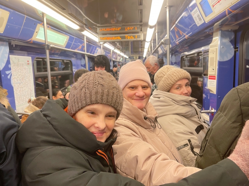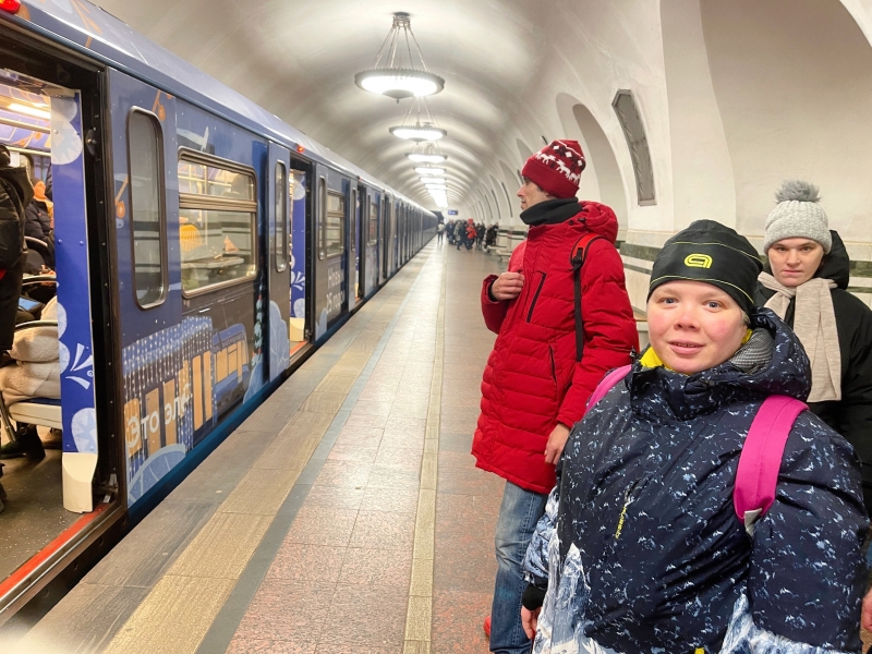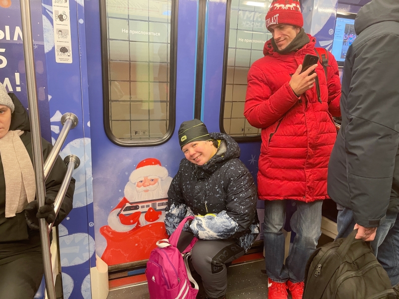 Во время поездки на занятия чирлидингом мы успеваем многое, от повторения маршрута поездки, чтобы каждый мог хорошо ориентироваться и случайно не потеряться в городе, до умения радоваться простым мелочам! Сегодня был прекрасный морозный, но солнечный день и мы радовались этому, а ещё, нам сегодня посчастливилось прокатиться в новогоднем поезде!