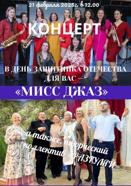 В программе концерта вас ждет великолепный джазовый оркестр девушек «Мисс Джаз», а также творческий коллектив креативных сотрудников «Разгуляй!».