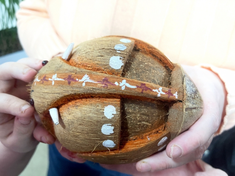 В итоге, после нескольких подсказок, мы узнали, что это шкатулки, выполненные из кокоса! 🌴🥥 А их причудливые формы в виде слона и собаки просто завоевали сердца девчонок!