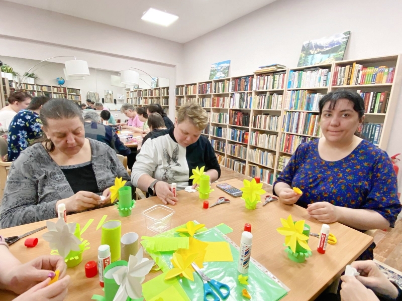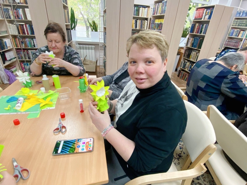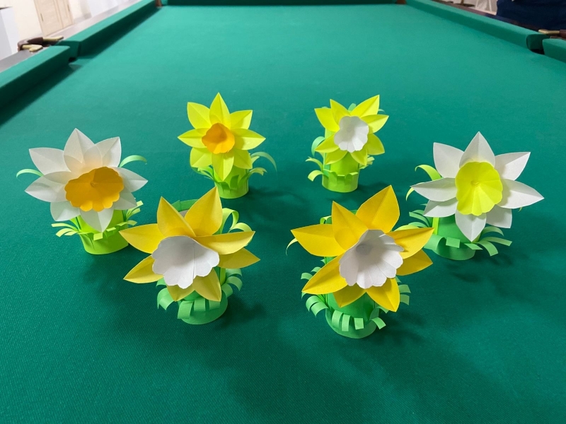 Креативность девчонок не знает границ: они разместили наши нарциссы на бильярдном столе, превратив его в настоящую зелёную полянку. Это не только украсило пространство, но и создало атмосферу весеннего праздника!