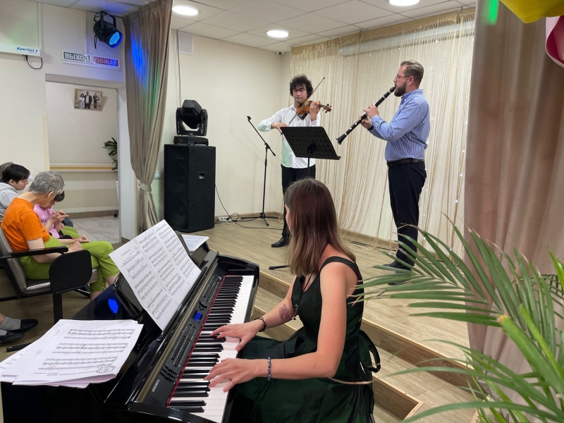 Перед нашими зрителями выступили высококлассные музыканты, лауреаты российских и международных конкурсов. Чарующий звук кларнета, виртуозная игра на скрипке и лирические мелодии фортепиано эмоционально пробудили всех присутствующих. Особое восхищение вызвала юная исполнительница на блок-флейте.