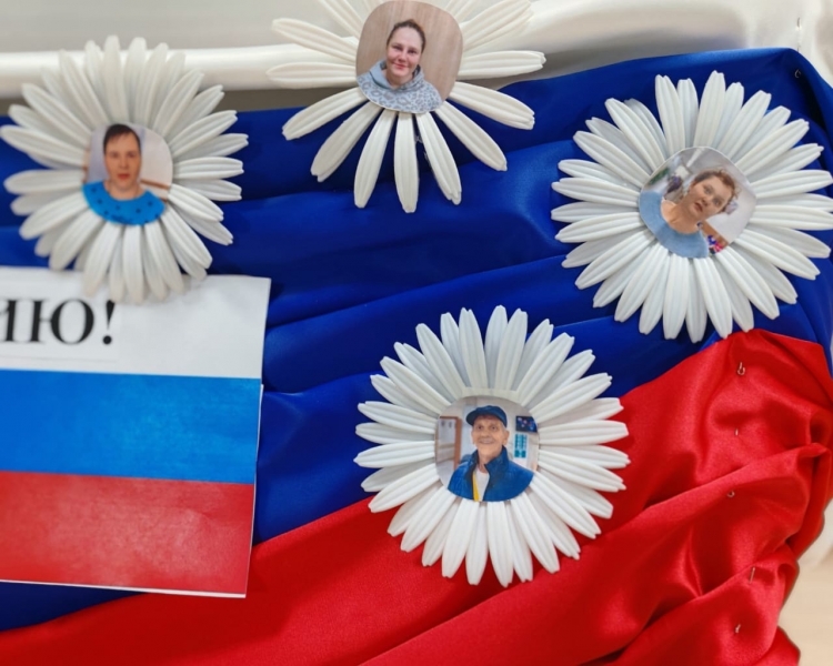 Идея родилась сама собой: украсить триколор ромашками, где в сердцевине каждого цветка — улыбающееся лицо кого-то из наших жителей. Для нас это не просто поделка, а важный реабилитационный момент.
