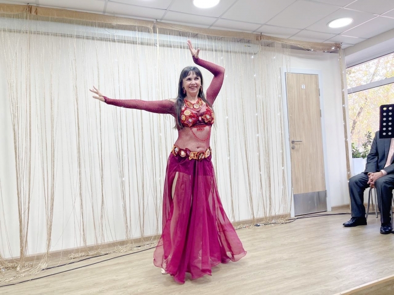 Нас посетил замечательный творческий коллектив «Мелодия любви» с особенной программой. Михаил Ткаченко дарил всем песни-пожелания, а вслед за ними начиналось настоящее волшебство — страстные и грациозные восточные танцы!