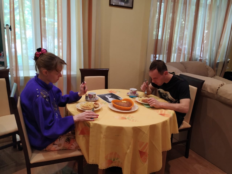 в социально-бытовой комнате наши ребята готовили кекс "Сердечко" и макароны с куриными котлетами. Обед получился замечательный!
