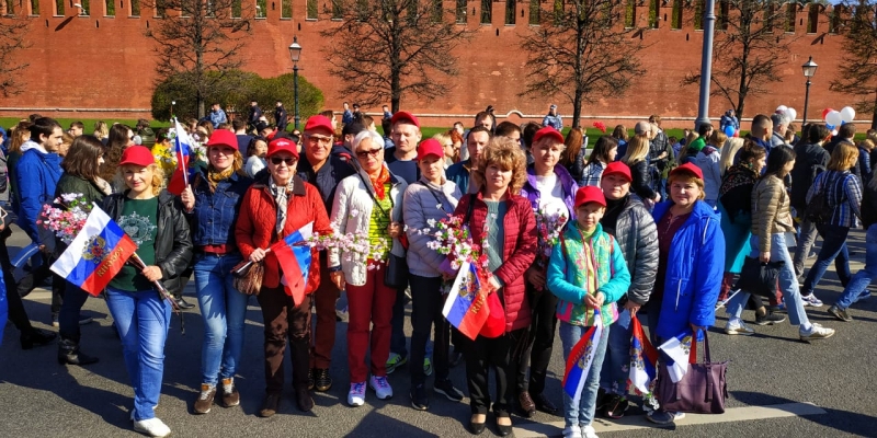 Сотрудники ГБУ ПНИ 26 не отстают от россиян: приняли участие в шествии по Красной площади в честь Первомая. Стройным рядом наши коллеги прошли по брусчатке в отличном настроении с цветами и флагами.