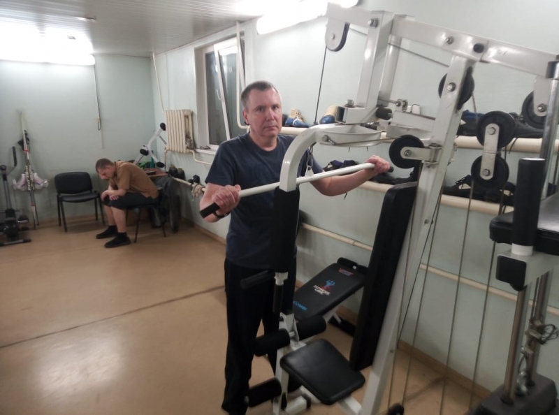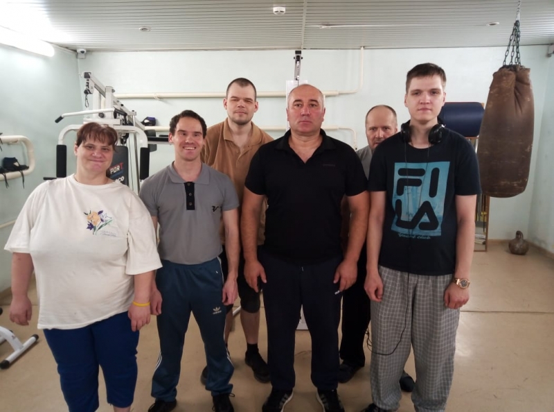 / Пять раз в неделю у получателей социальных услуг ПНИ №26, проходят занятия на силовых тренажерах.