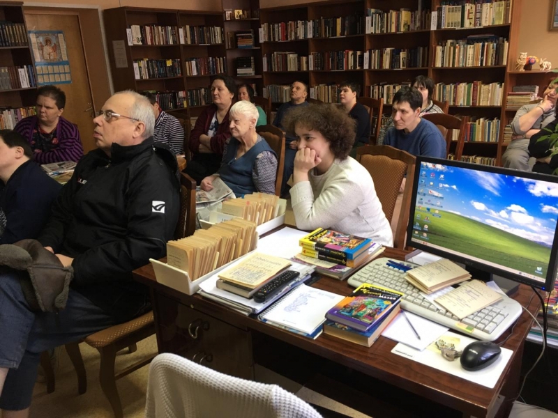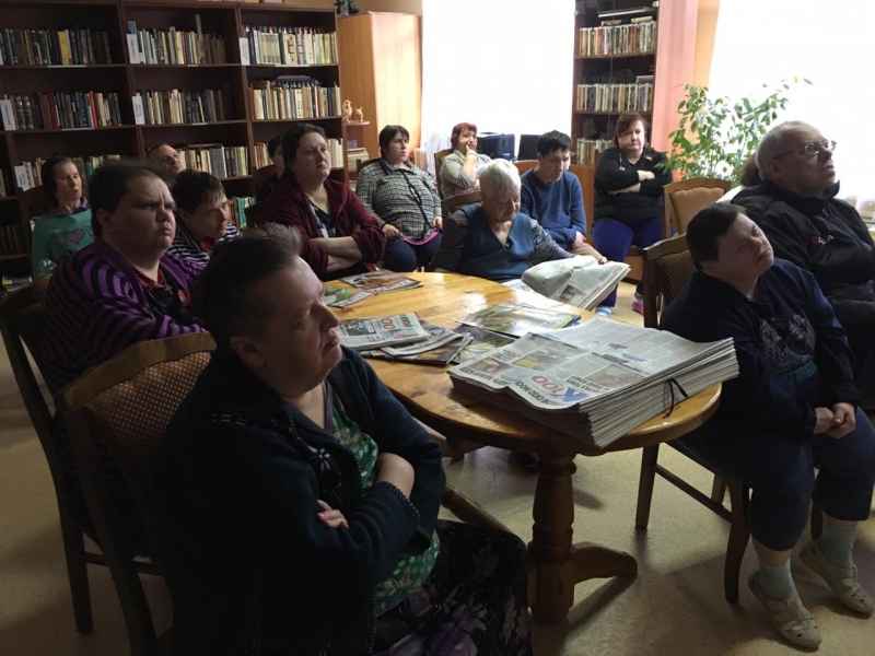 Библиотекарь немного рассказала о жизни и творчестве актера, а потом получатели социальных услуг посмотрели 1 серию фильма «Про красную шапочку», где Р. Быков сыграл роль главного охотника.