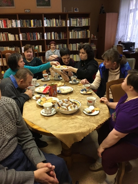 После просмотра получатели социальных услуг смогли отпраздновать день рождение Дедушки Мороза чаепитием.