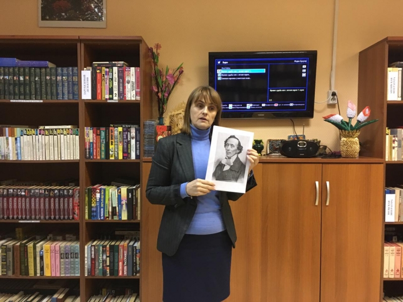 В библиотеке прошла Литературная гостиная, посвящённая творчеству Ганса Христиана Андерсена. Библиотекарь немного рассказала о жизни творчестве известного сказочника и особое внимание уделила сказкам писателя.