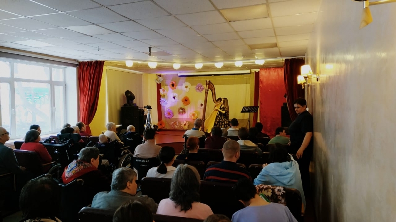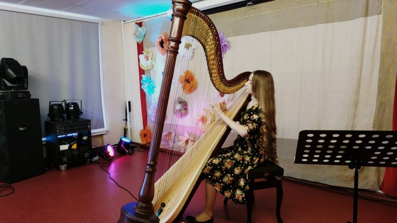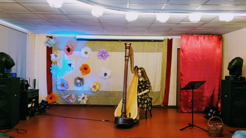 В нем принимали участие: лауреат международных конкурсов, студентка второго курса Московской консерватории Ирина Афанасьева - исполнила классические произведения на арфе, а также, лауреат международных фольклорных фестивалей в Англии и Испании, обладатель гран-при всероссийского конкурса старинного русского романса - Светлана Смирнова. Наши ребята впервые услышали волшебные звуки арфы - древнейшего струнного музыкального инструмента. А вместе с певицей Светланой Смирновой наши ребята исполнили веселые частушки и продемонстрировали свое умение игры на шумовых инструментах.